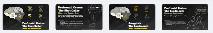 - We frame the Prefrontal Cortex (executive function) as the "Shot Caller," not because it’s about toughness or control over others, but because this is the strategic, decision-making part of the brain.