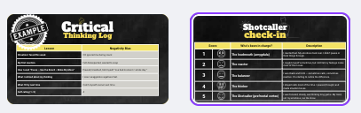 - The Shot Caller Check-In: You can’t think critically if you are emotionally hijacked. This tool serves as the vital bridge between Emotional Intelligence and Critical Thinking. By asking, "Who is driving right now?" learners practice the essential EQ skill of identifying their emotional state in real-time. This awareness creates the necessary "circuit break" that allows the Shot Caller (logic) to come back online.